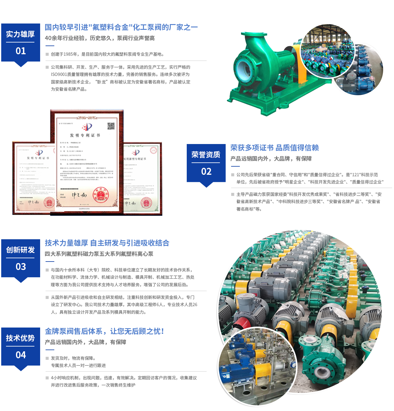 ??安徽臥龍泵閥股份有限公司前身涇縣氟塑料制品廠創(chuàng)建于1985年,是國內(nèi)較早引進中科院上海有機化學(xué)研究所專利材料——"氟塑料合金",并以此耐腐蝕材料專業(yè)生產(chǎn)制造化工泵、閥、襯氟管道等產(chǎn)品的企業(yè)。公司經(jīng)過歷次的改制變革,2015年更名為安徽臥龍泵閥股份有限公司。